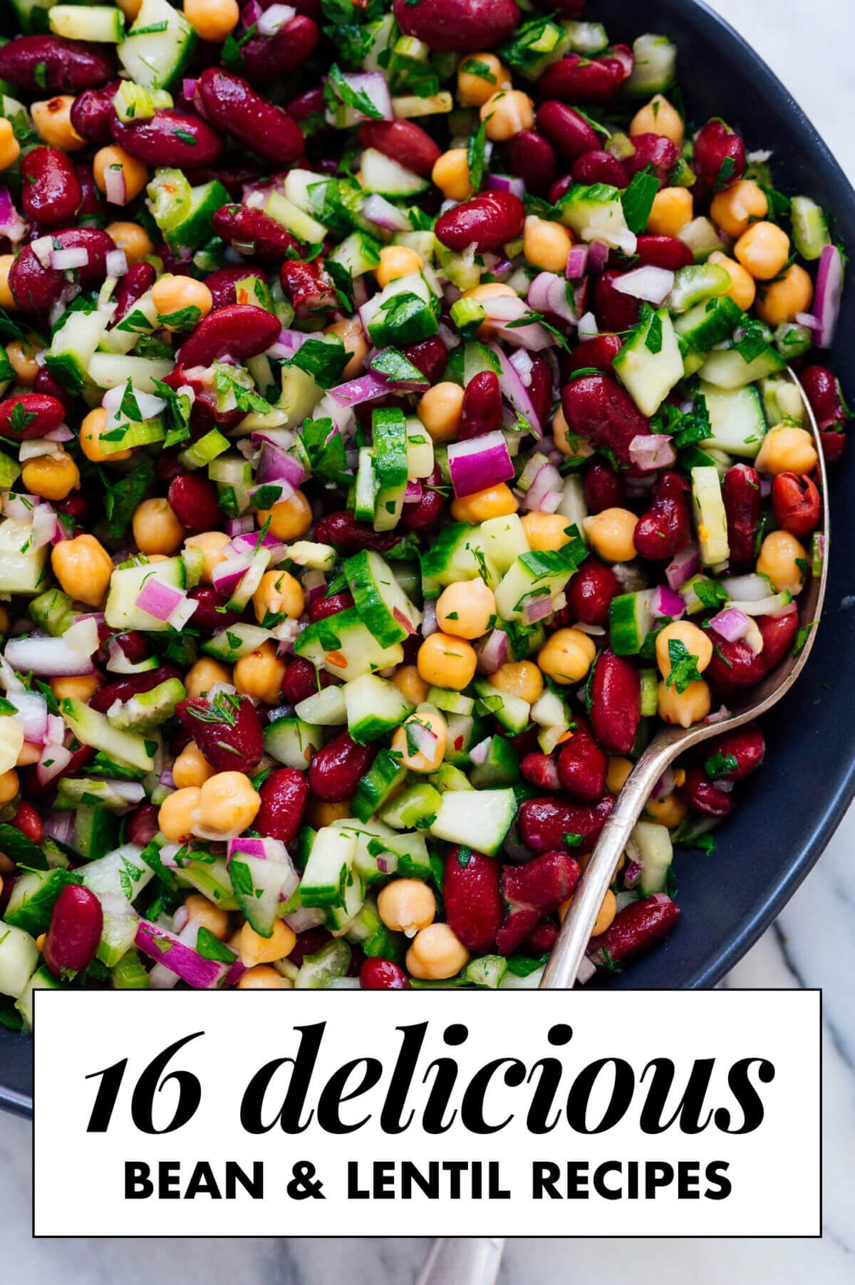 A fresh and filling bean salad flavored with lemon and fresh mint and dill. Use steamed lentils and canned chickpeas for a meal ready in under 20 minutes. This salad keeps well for a few days in the fridge and packs great for lunch! Recipe yields about 5 1/2 cups (4 to 6 servings).