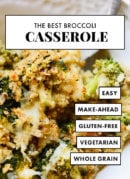 Broccoli casserole made better with roasted fresh broccoli, cheddar cheese, creamy quinoa and irresistible, garlicky whole grain bread crumbs. This healthy casserole is easy to make and tastes amazing! Recipe yields 6 to 8 servings.