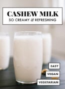 Please let me know how your cashew milk turns out in the comments! If youโre looking for more homemade milk alternatives, check donโt miss my pecan milk, oat milk and pistachio milk.