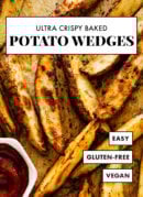 Change it up: These potato wedges make great cheese fries, too. Once they’re done baking, sprinkle generously with shredded cheddar cheese. Return them to the oven and bake for 5 to 10 minutes, until golden and bubbly on top. I like to sprinkle them with thinly sliced green onion before serving.