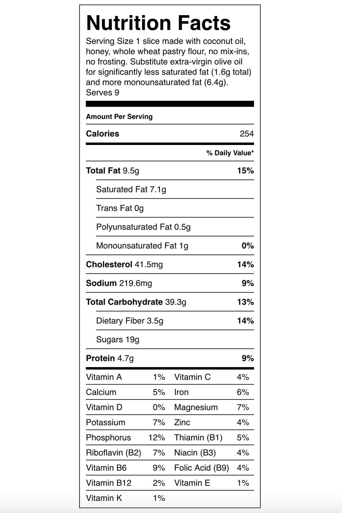 If youโre interested in naturally-sweetened cream cheese frosting, youโre in luck, because I have a date-sweetened cream cheese frosting recipe here. You could also check out the coconut and pecan frosting on the German chocolate cake in my cookbook (page 212). Or, spread slices of cake with almond butter and a drizzle of honey or maple syrup. If youโre interested, here are the nutrition facts for the cake without frosting.