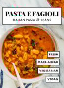 Pasta e fagioli means "pasta and beans" in Italianโthis recipe is much more than that! This hearty vegetarian stew is full of irresistible fresh flavor.