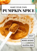 Pumpkin spice blend is so easy to make. Combine ground cinnamon, ginger, nutmeg, and allspice or cloves. Then, make your favorite pumpkin recipe!