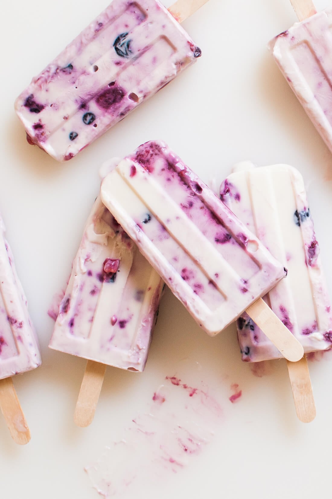 This tangy, honey-sweetened lemon blueberry frozen yogurt is a delightful summer treat. Use full fat yogurt for the best texture, and buy organic berries and lemon if you can.