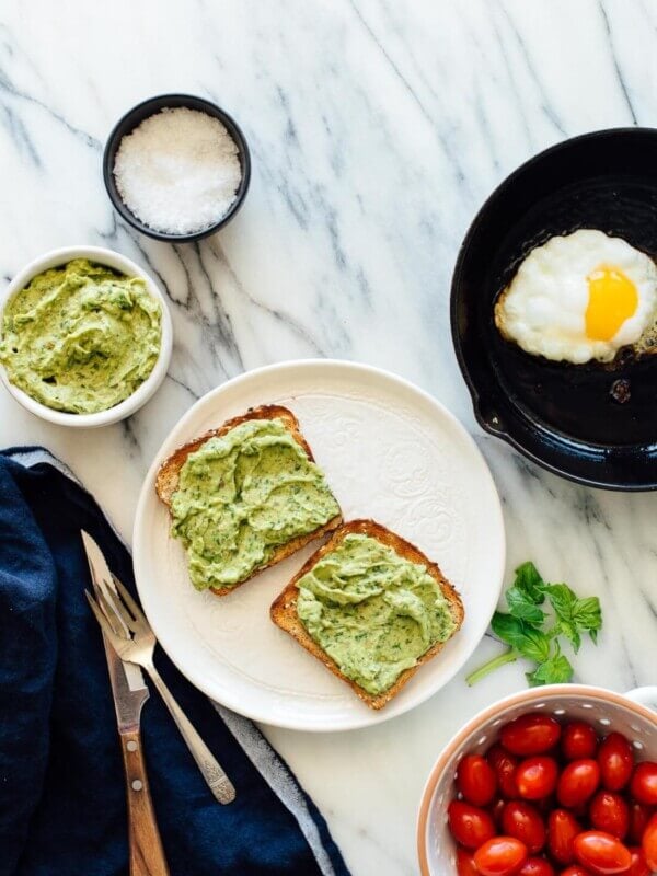 Simple Goat Cheese and Egg Toasts with Fresh Peas and Dill